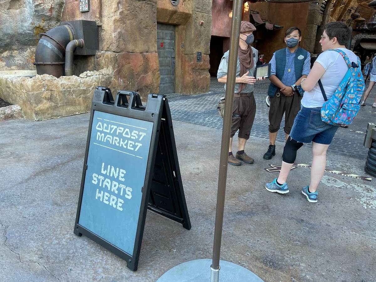 Some new goods have arrived on Batuu and with increased demand, the outdoor marketplace shops are now using a virtual queue system. Plan your visit as early as possible because they can fill up for the day.