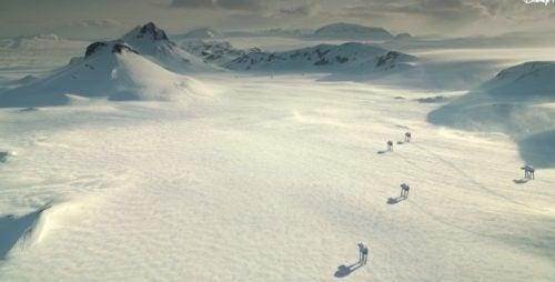 We’re calling it Soarin’ Over Star Wars Planets. The 18 minute film takes viewers over the ice planet of Hoth, blue shrimp farms of Sorgan, the sand dune of Tatooine, the salt flats of Crait, the lava flows of Mustafar, and the primitive Ach-to.