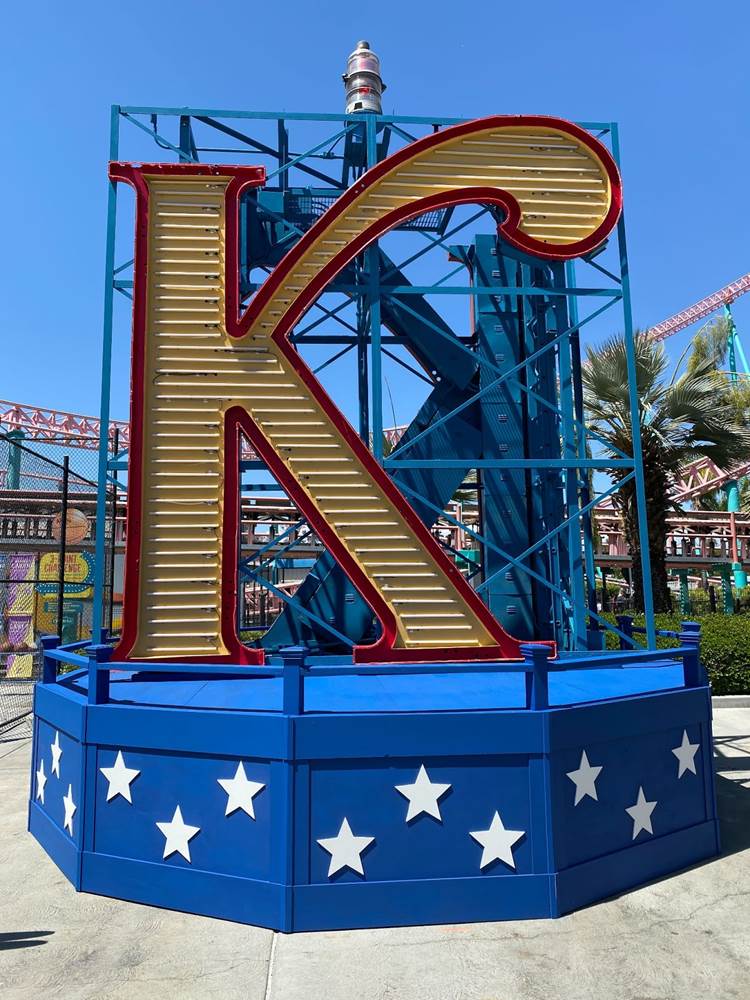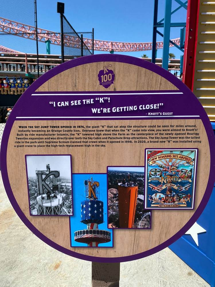 One final photo op I wanted to point out in Knott’s Boardwalk area is the giant “K” next to the informational plaque about the icon’s history. If you watch the very end of the 100th Anniversary Celebration video above, you’ll see the inspirational lighting ceremony for the new K perched atop the Sky Cabin tower, complete with very cool lighting effects, soaring music, and fireworks. It’s going to be a great summer at Knott’s Berry Farm.