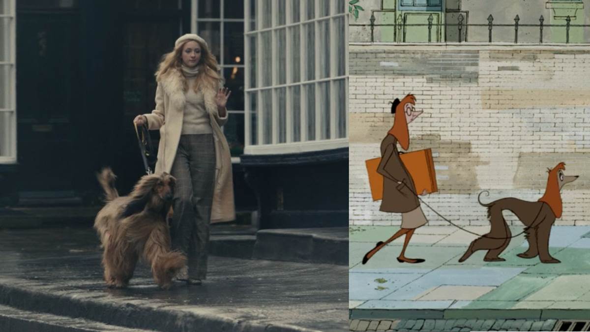 Horace and Jasper notice that some dog owners look like their dogs while Cruella is meeting with Anita, an homage to the moment when Pongo first spotted Anita in the animated film.