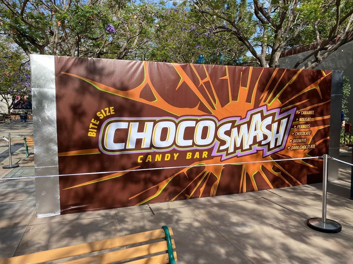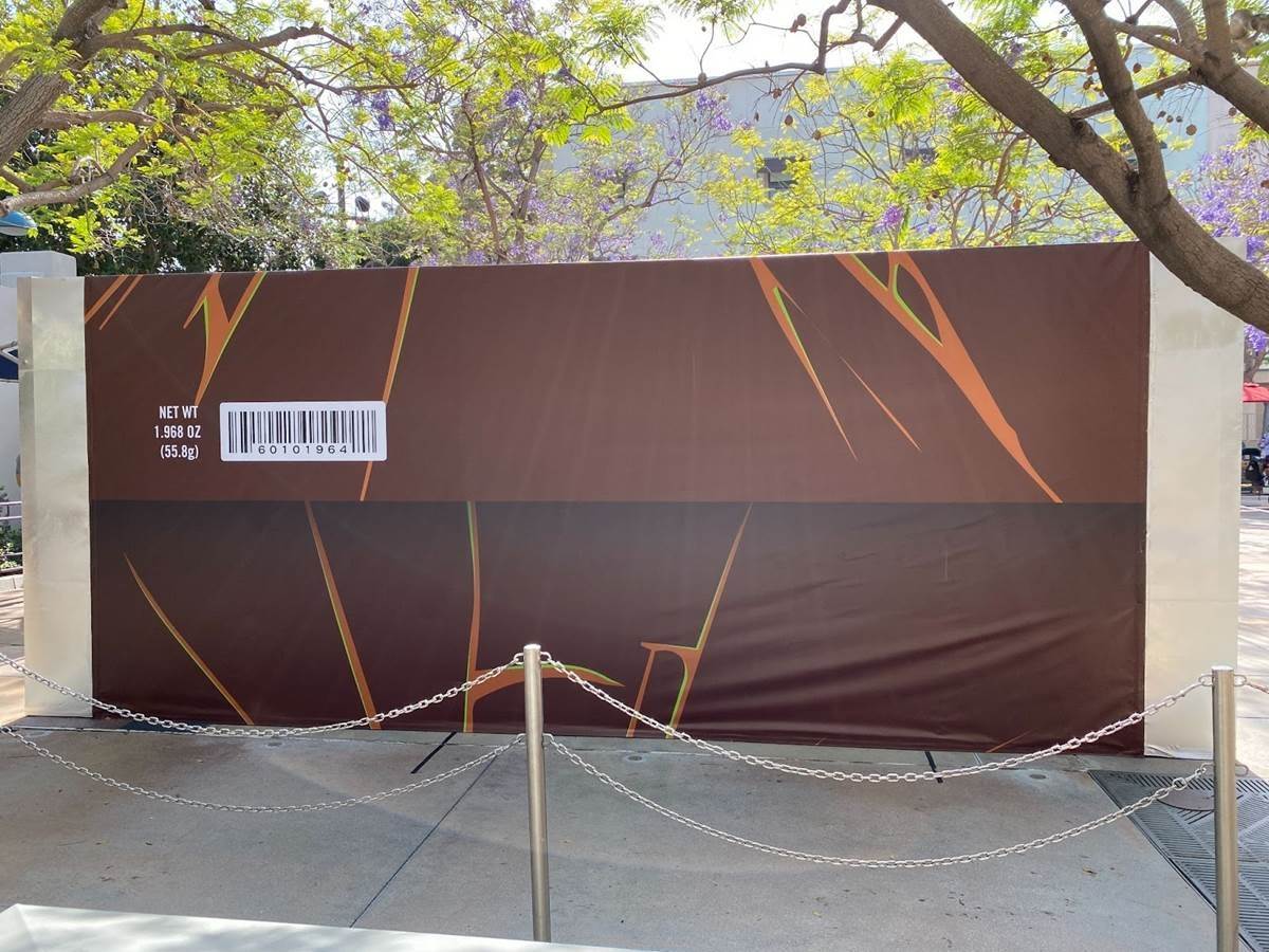 As we pointed out in one of the installments of our Countdown to Avengers Campus, guests will find this giant Choco Smash bar in the middle of the seating area for the Pym Test Kitchen. While the front is clearly a nod to the Incredible Hulk, the back actually features two of our favorite Easter Eggs.