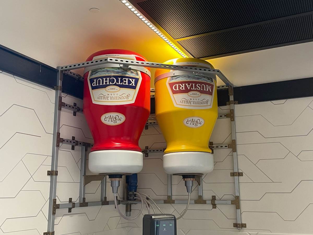 In the Pym Test Kitchen, you’re going to find some very large and some very tiny details. For example, the condiment station you see above has been enlarged using Pym Particles. However, a closer inspection will reveal a nice nod to the history of Disney California Adventure. “Bountiful Valley Farm” can be seen on the sides of these massive condiment bottles, a reference to a former section of Disney California Adventure which is now occupied by Avengers Campus.