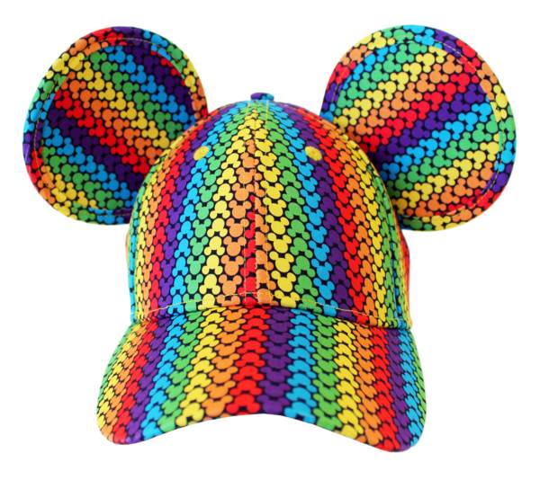 “Our classic Mickey Ears Hat—but make it Pride! Celebrate Pride Month 2021 in style with this iconic Mickey Ears Hat featuring a Disney’s Mickey Mouse rainbow pattern.”