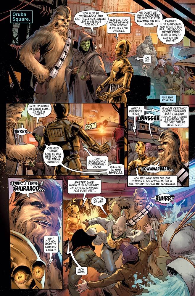 Comic Review – Valance Encounters Chewbacca and C-3PO on Nar Shaddaa in “Star Wars: Bounty Hunters” #13