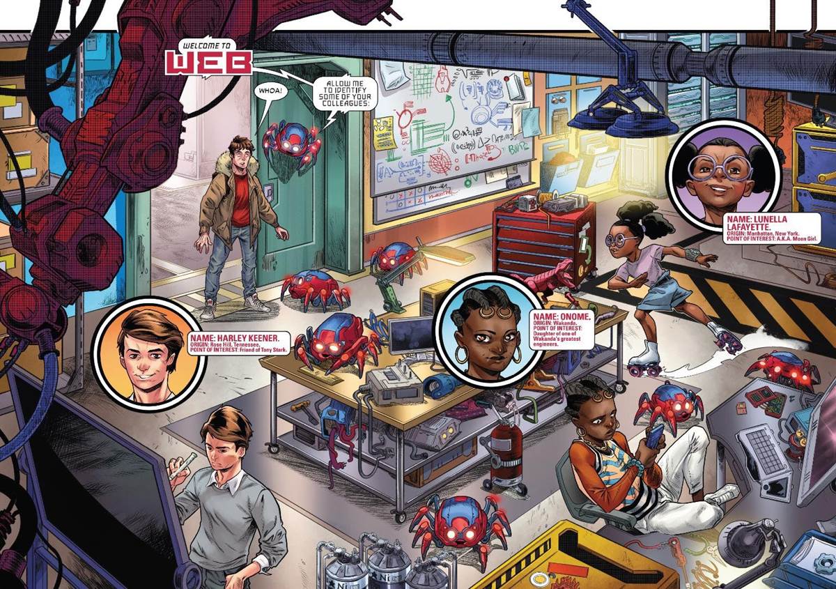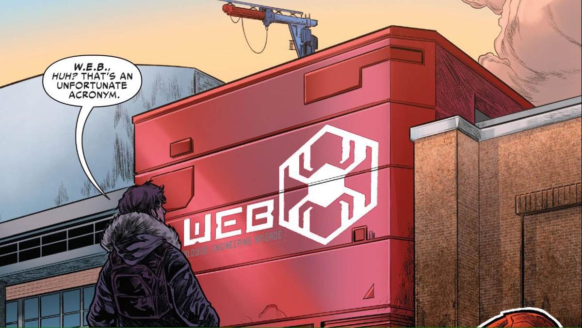 “W.E.B. of Spider-Man #1” introduces us to the Worldwide Engineering Brigade (or WEB). The building found in Avengers Campus can now be found in this new comic as well as Peter Parker is heading in for his first day at this new scientific organization.