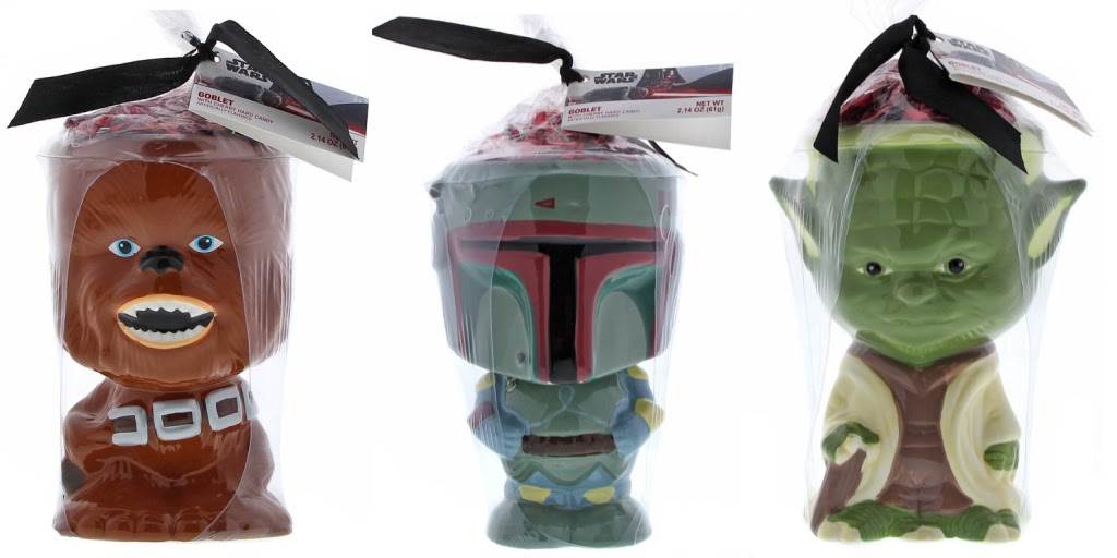 Satisfy that sweet tooth with treats from Galerie Candy. The selection of Star Wars items include two types of Mugs, Goblets, and candy dispensers!