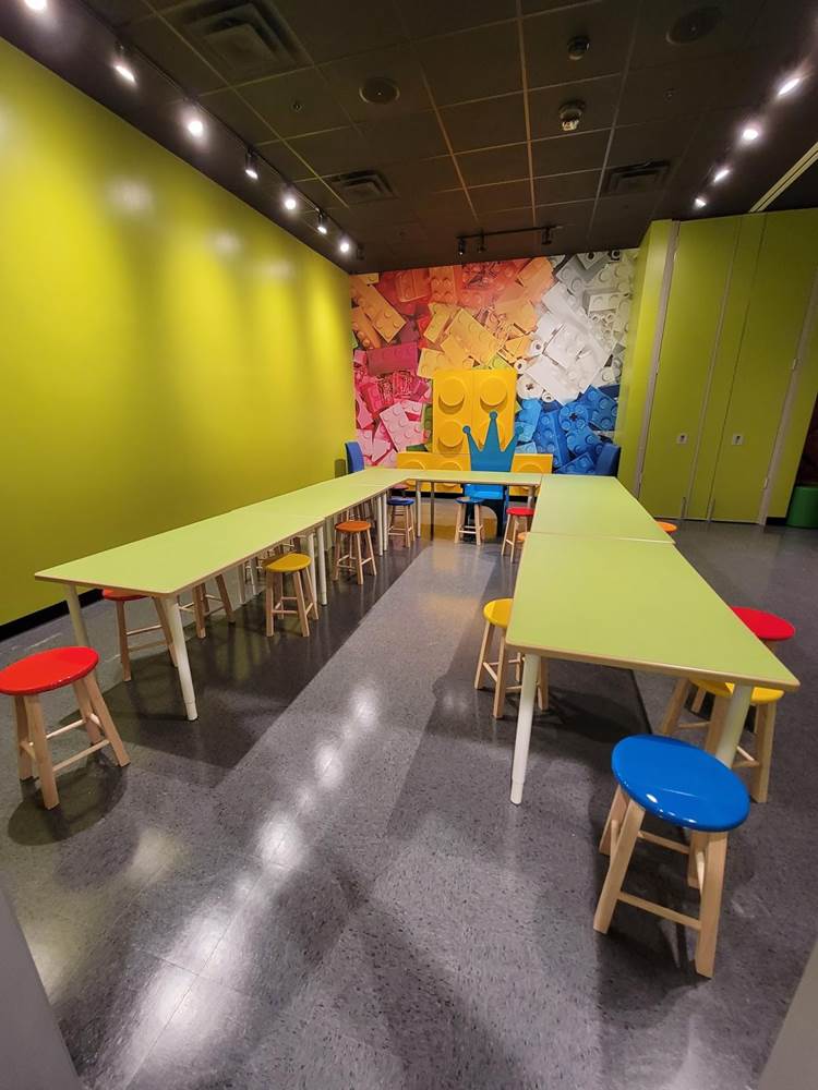 In the back of Legoland Discovery Area Bay Area are a couple of birthday celebrations that can be one larger room or two smaller ones. Next door to the Coffee shop, restrooms and 4D theater.