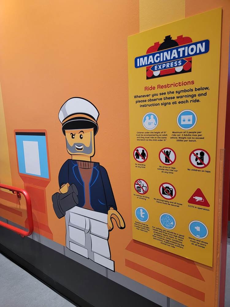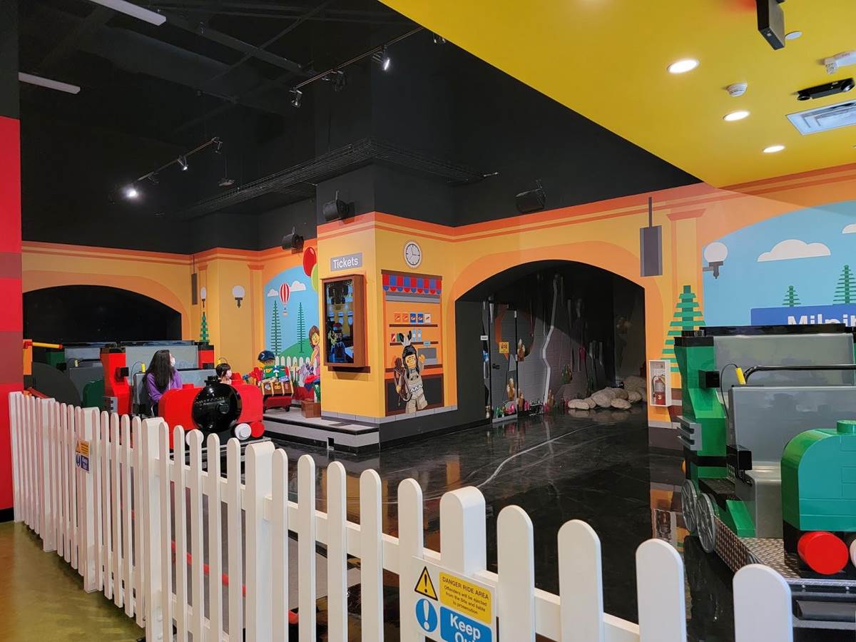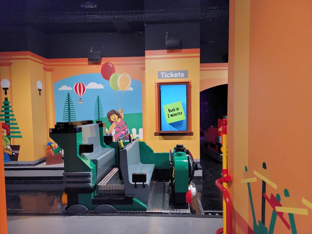 Stepping inside Legoland Discovery you immediately come upon the Racers Build and Test Zone with Ninjago training in the distance and the checkered entrance to Miniland. Just behind us is the entrance to the Imagination Express interactive dark ride.