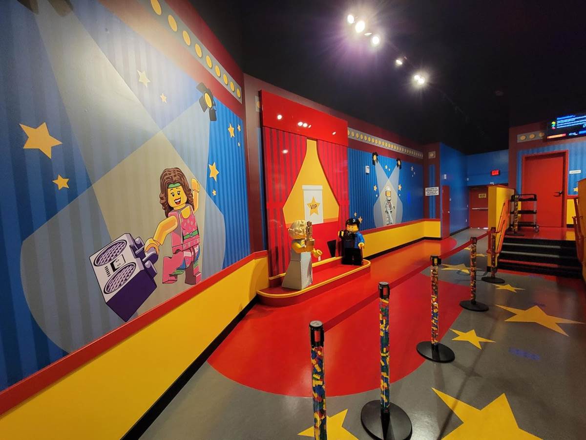Not only are there flat photo backgrounds in the lobby of the 4D theater but they have a couple of sculpted minifigs as well.