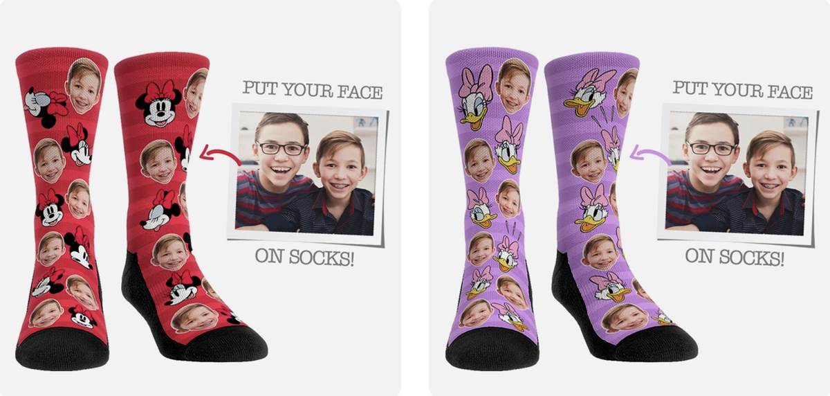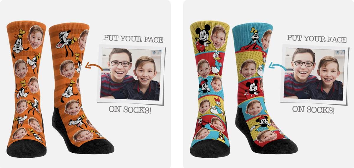 Keep the whole family on their toes with fun, personalizable socks featuring you and your favorite Disney characters! Your face can be added right next to Mickey, Minnie, Daisy and the rest of the Disney gang for some fancy and completely unique footwear. And check back on June 21st and 22nd for special deals and reveals as part of Rock ‘Em’s Design Day!