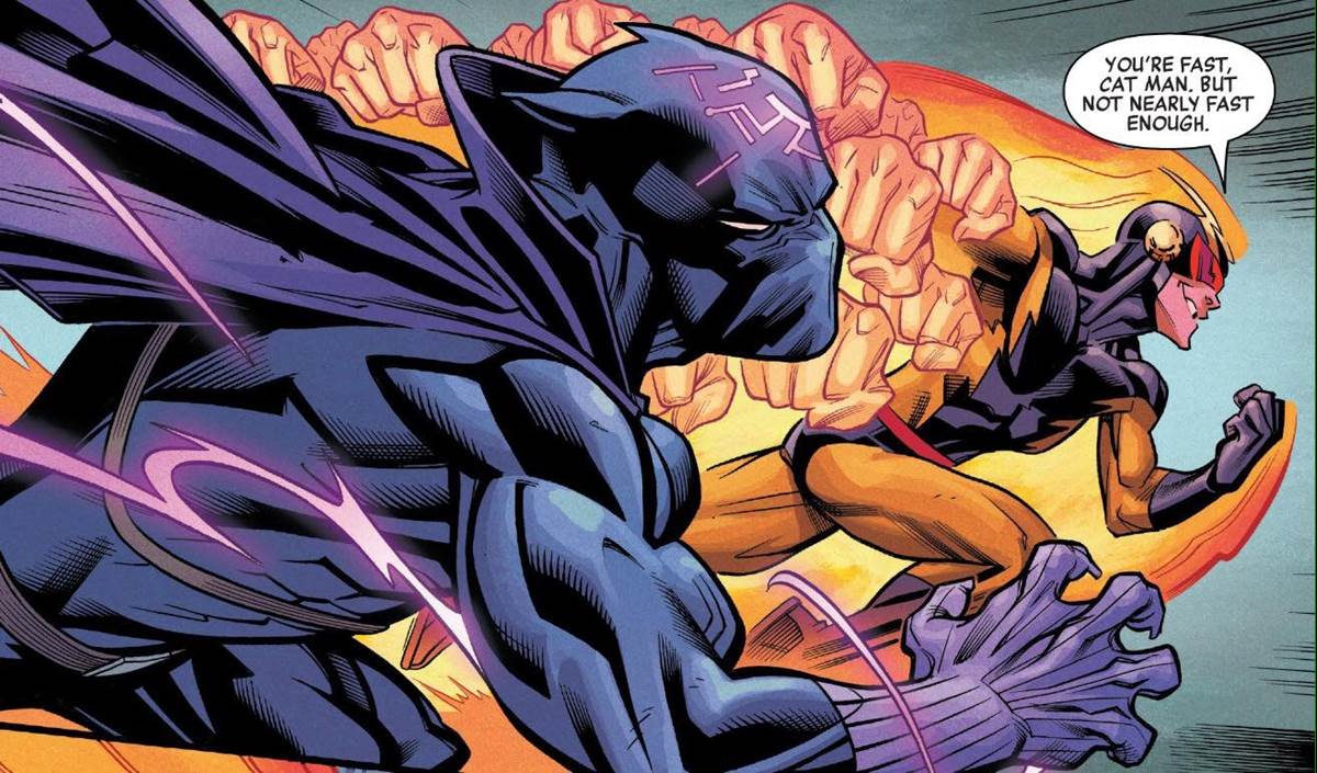 Realizing there was something wrong about the world around them, several of our favorite heroes lured the Squadron Supreme to Wakanda to face off against these false heroes. With both sides unwilling to talk peacefully, the confrontation quickly devolves into punches and energy blasts being thrown.