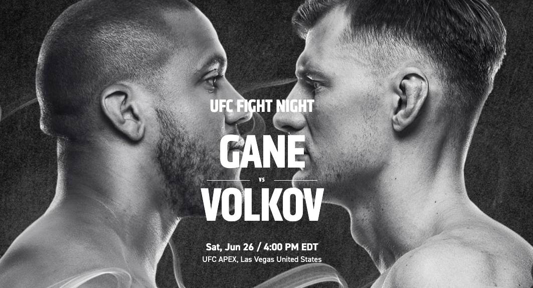 UFC Fight Night: Gane vs. Volkov will be held Saturday, June 26 at 4 PM ET. Fight fans can watch live on ESPN+.