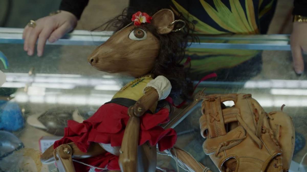 When Gabby tells Jeremy about how badly she wants the shoes, he tells her about an alien who buys human stuff and resells it to other aliens who think it’s rare. Soon after, Gabby and Jeremy arrive at an abandoned stripmall with a wagon full of junk Gabby wants to get rid of. Inside an elevator, Jeremy pushes all the buttons, which takes them to a secret basement pawn shop for aliens. Among the items in Gabby’s wagon is a wooden marionette puppet of a female rat, the name written on its foot: “Ratita.” Gabby receives $700 for her stuff, more than enough to buy her shoes. Jeremy brought with him one of Principal Swift’s bowties, trading it in for a paper fortune teller.