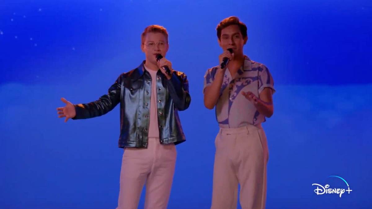 Nina West made Disney fans of all backgrounds feel welcome and shouted out two Disney+ originals, Pixar Sparkshorts Out and the inclusive storytelling on High School Musical: The Musical: The Series. Welcoming real-life couple Frankie Rodriguez and Joe Serafini, the duo performed “A Whole New World” from Aladdin.