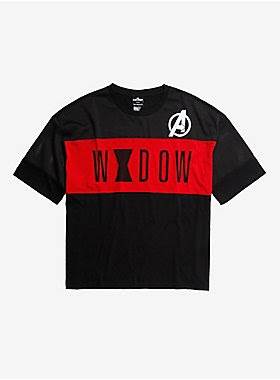 Fans will find dozens of movie and comic tie-in t-shirts and tank tops featuring Black Widow, Taskmaster and more.