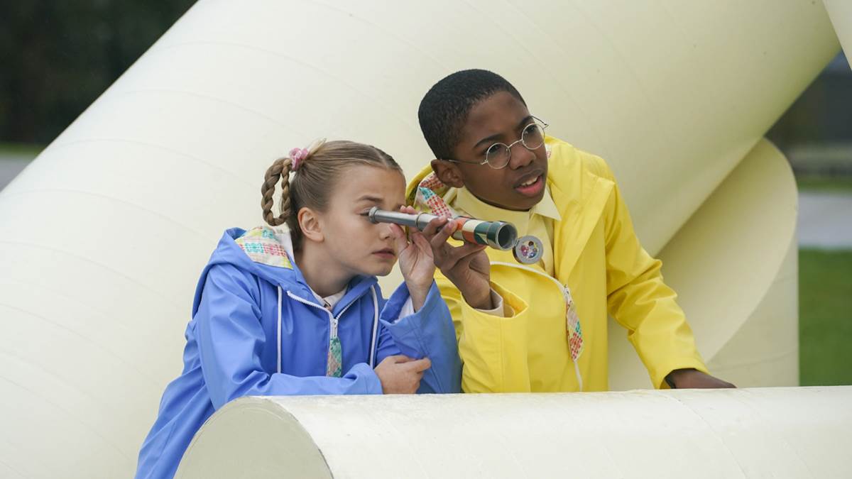“A Whisper, Not a Shout” is the perfect title for episode 4 of The Mysterious Benedict Society. While Reynie, Sticky, Kate, and Constance (Mystic Inscho, Seth Carr, Emmy DeOliveira, Marta Kessler) settle on the idea of cheating in class to help the girls stay at the institute, they hatch another plan to gain some insight into what Mr. Curtain (Tony Hale) is doing.
