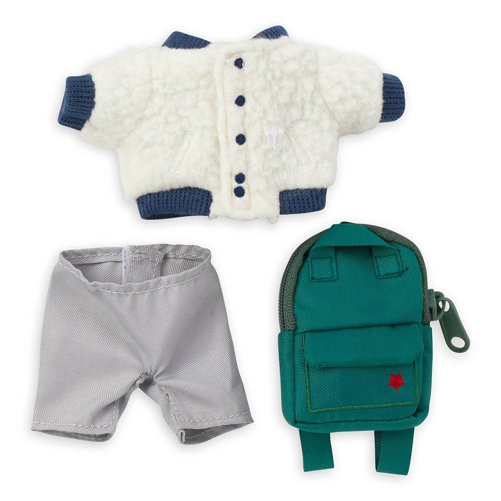 Disney nuiMOs Outfit – Sherpa Jacket and Gray Pants with Green Backpack