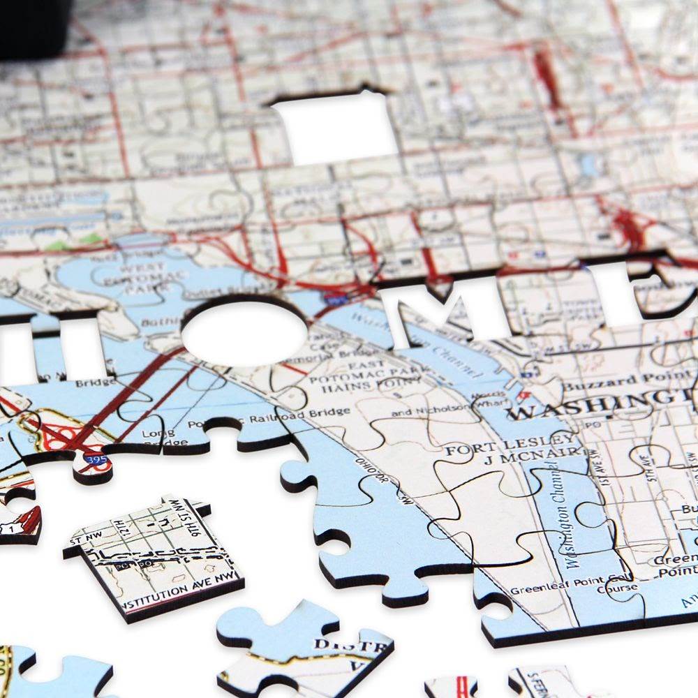 I love jigsaw puzzles and have assembled and reassembled hundreds of designs, but I’ve never seen anything like the new National Geographic My Town puzzles. Customized to your home location through US Geological Survey (USGS) mapping and the address you give them, National Geographic will make a custom puzzle that has your favorite place right at the heart of the puzzle, literally! Each My Town puzzle comes with a house shaped piece that fits perfectly in the center of the image. Available in standard millboard or wooden formats.