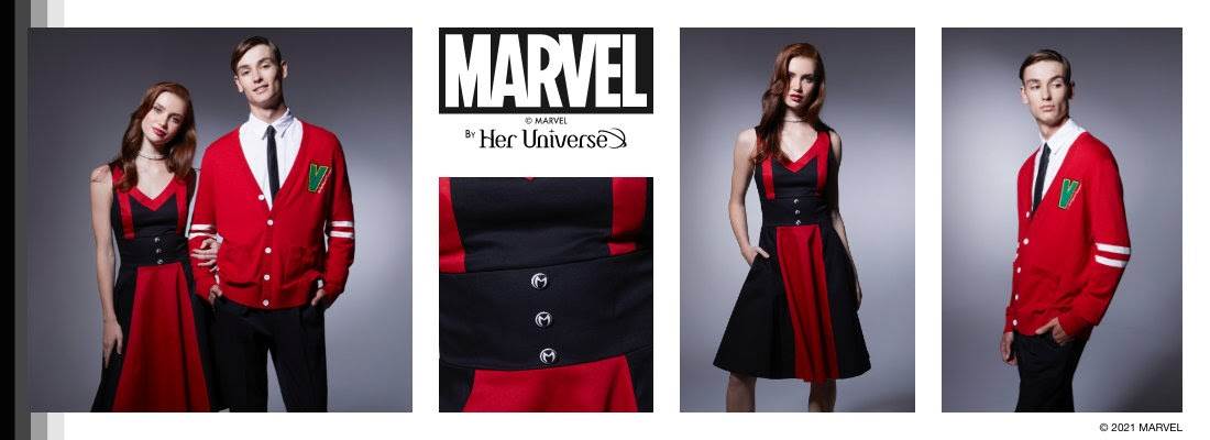 For more than 80 years, Marvel has been entertaining audiences through comics, films, video games and more. This year Her Universe is honoring their legacy with new outfits inspired by two groups of characters fans have come to love: Wanda, Vision, and the Avengers! Whether you grew up on everything Marvel or are just coming into the franchise, share your love with the Comic-Con@Home Collection.