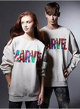 “Give your wardrobe a vintage flair with this sweatshirt! Inspired by Marvel's greatest comic book heroes, each letter of “Marvel’ features one of your favorite superheroes.”