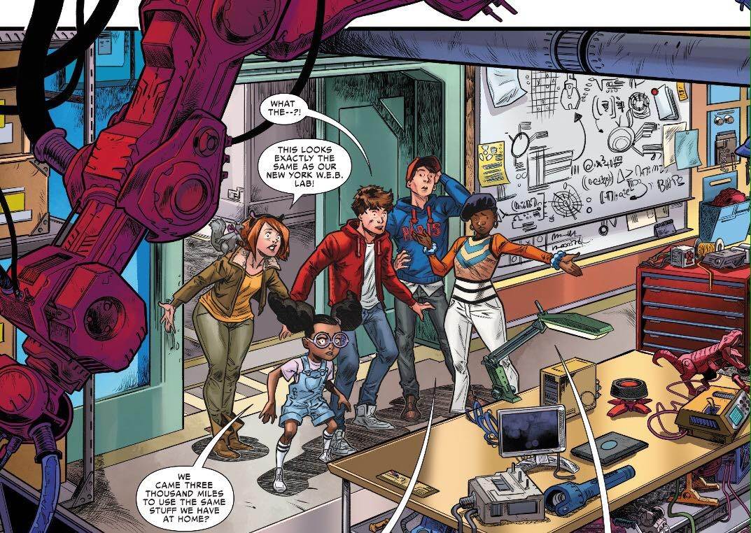 “WEB of Spider-Man #3” sees the bright young minds of the Worldwide Engineering Brigade head from their New York campus overseas to the new Paris location. Of course, they can’t help but to get into a little more trouble on their way over and Peter as a lot of work on his hands once again.