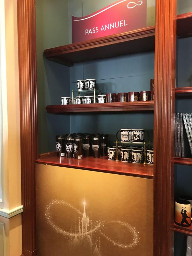Annual Pass discounts are applicable to most items as they would in usual shopping locations. Aside from the small collection of exclusive items, the store sells merchandise that can be found in most locations such as Spirit Jerseys, pins, lanyards, mugs, Loungefly backpacks, snow globes, Traditions sculptures, Phantom Manor (and Haunted Mansion merchandise) and much more. And yes - they do still sell books!