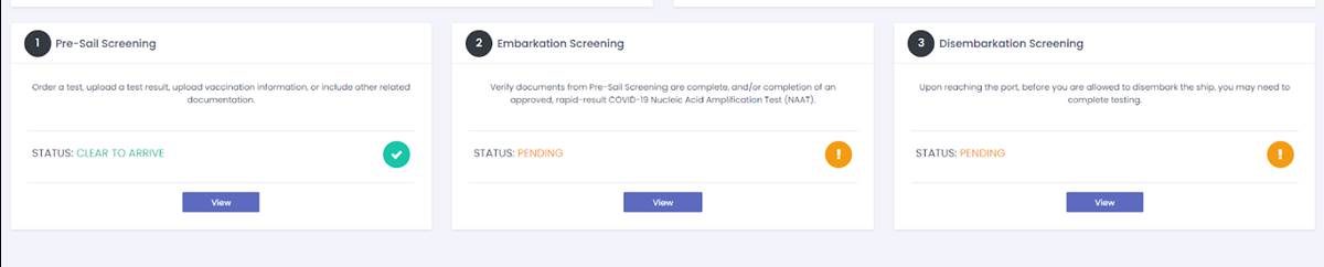 Once you’re signed up, you’ll go through the Pre-Sail screening as shown below.