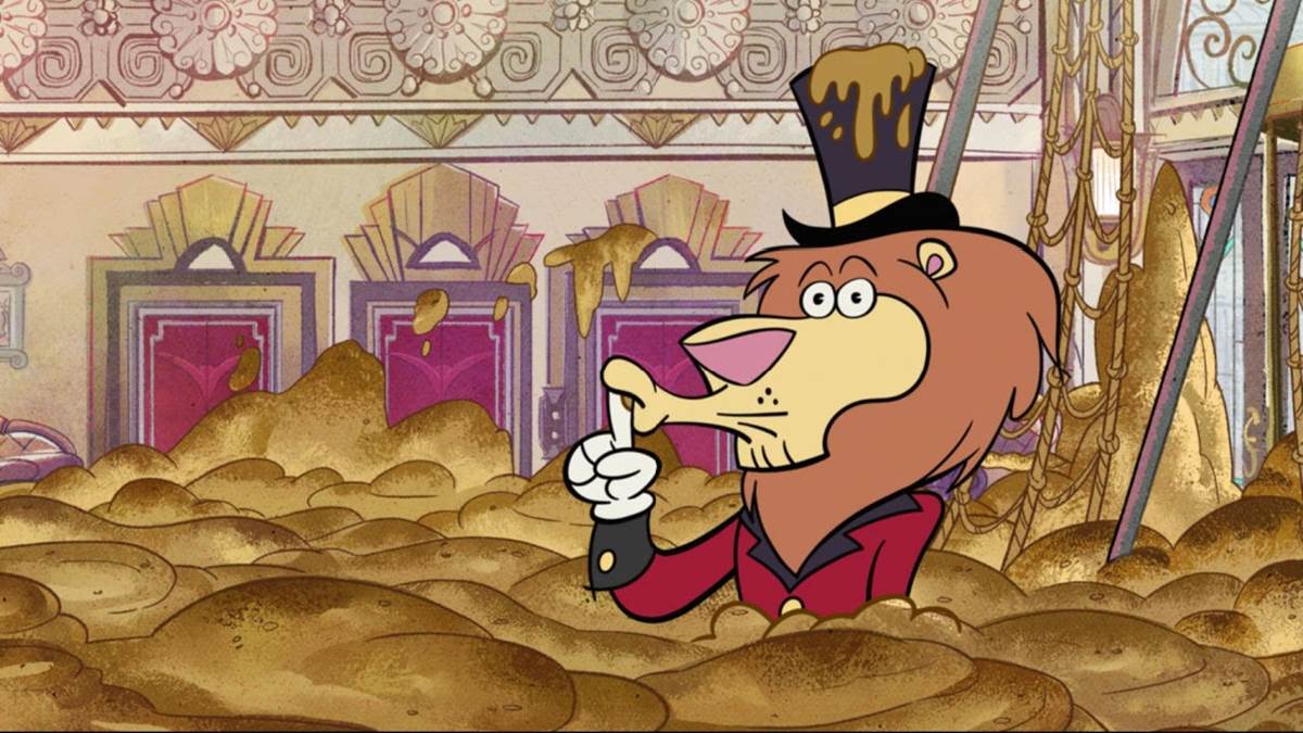 Goofy rushes to make more bread, but he swaps ingredients, like grape soda for baking soda, and uses his giant tablespoon. He gets anxious about the new dough in the oven and decides to peek inside, creating an explosion of dough that floods the lobby, drowning the circus animals. The lion pokes his head out and tastes some, loving it. All the circus animals do.