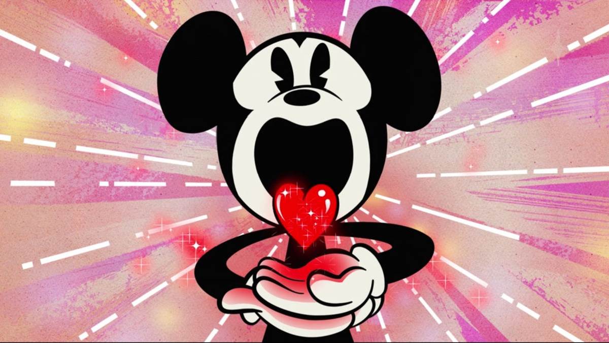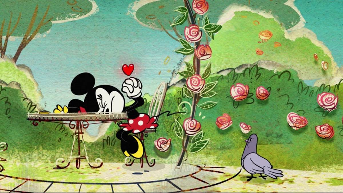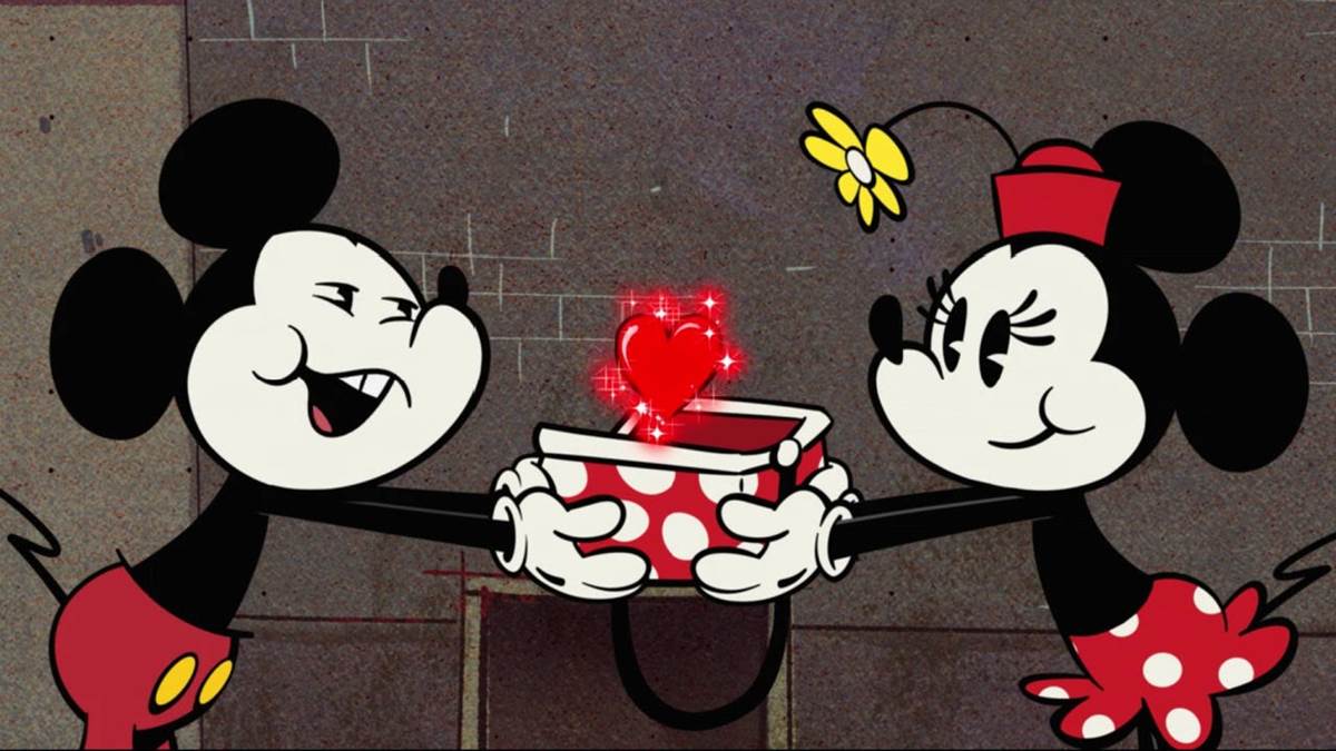 Mickey and Minnie are on a date and Mickey wants to give Minnie something special, but a red rose and a diamond ring (which he throws at a pigeon) don’t feel special enough. He summons up a big kiss, which causes his heart to sparkle and leave his chest, ending up in his hands. Minnie promises Mickey that she will keep it forever, but as he blows it her way...