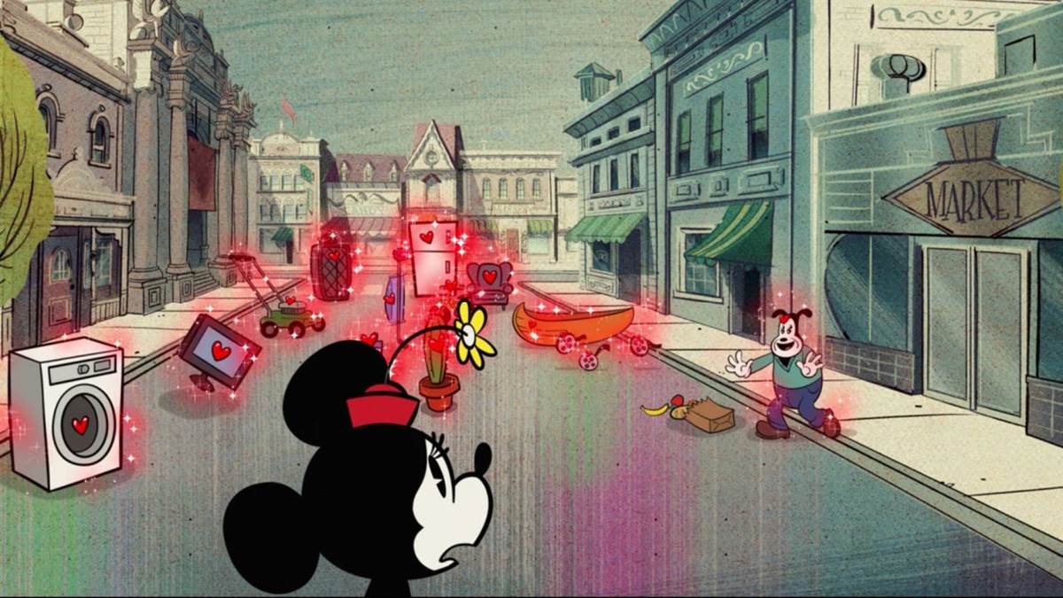 With so many enchanted heart objects (and a citizen, Minnie feels hopeless. As she battles a lawnower, she and Mickey end up escaping down into the sewer.