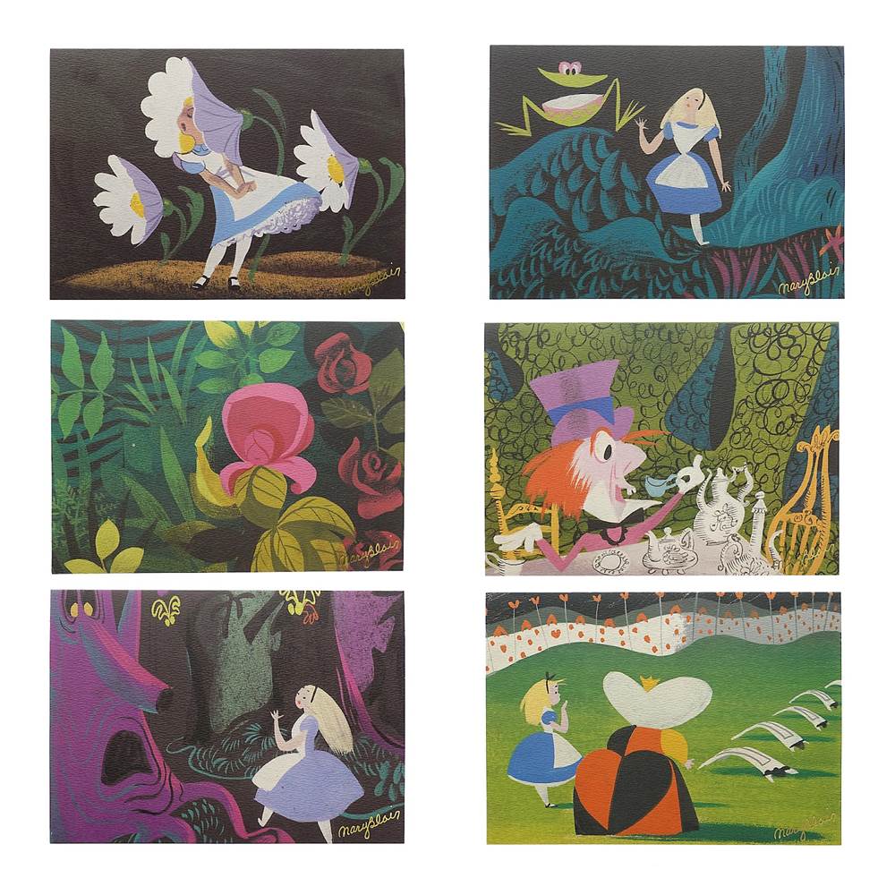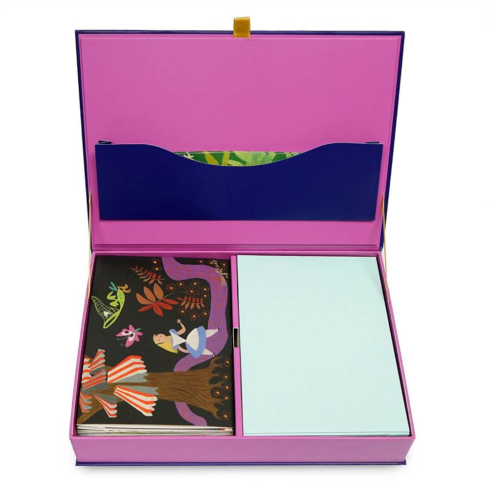 “Drop into the topsy-turvy world of Alice in Wonderland for a curious collection of notecards reproducing inspirational art for the animated classic by Disney Legend Mary Blair. This set of 20 comes in a keepsake gift box including envelopes and sticker sheets.”
