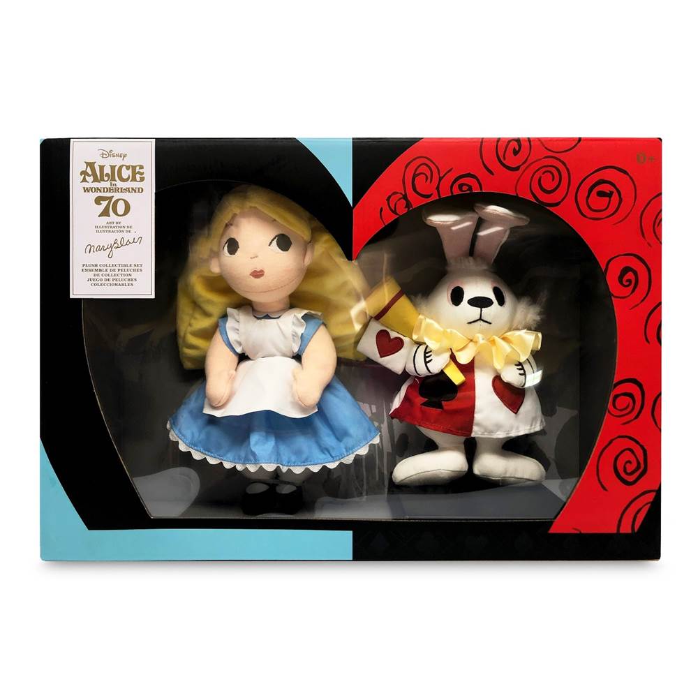 Alice and the White Rabbit are quite the pair and this adorable plush set showcases both in the beautiful style of Mary Blair. Alice is in her classic blue dress and white pinafore, while the untimely bunny sports a spade and heart shift complete with yellow collar.