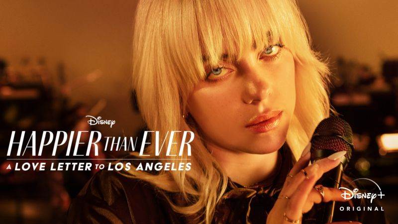 “GRAMMY Award-winning and chart-topping artist Billie Eilish will make her Disney+ debut with Happier than Ever: A Love Letter to Los Angeles, a cinematic concert experience. Fresh off the heels of her brand-new album, "Happier than Ever," the Disney+ original will feature an intimate performance of every song in the album's sequential order – for the first and only time – from the stage of the legendary Hollywood Bowl.”
