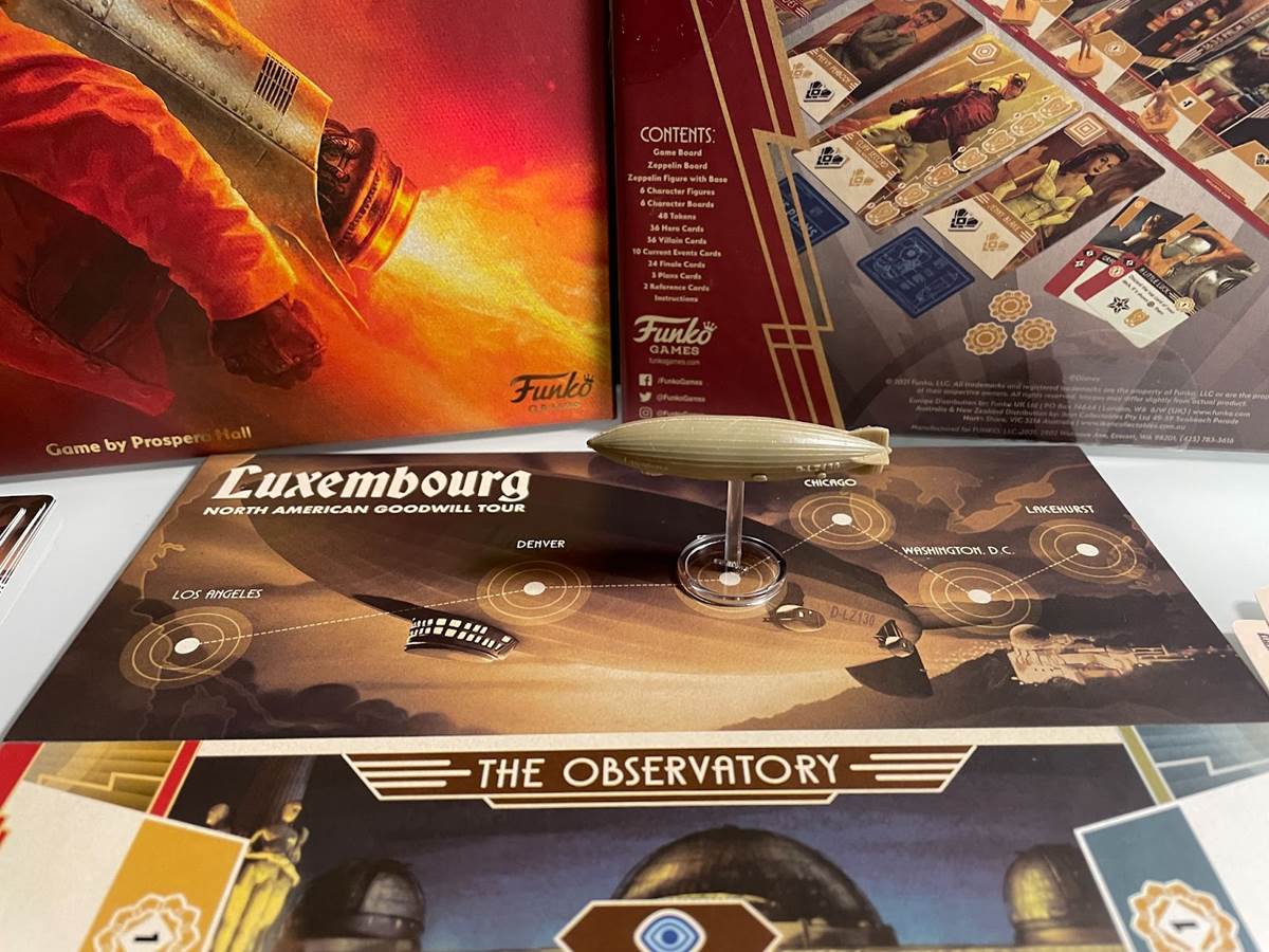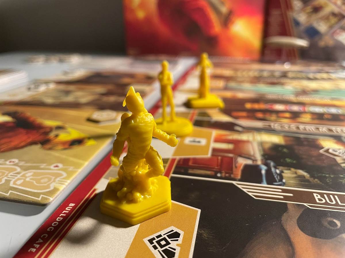 Designed by Prospero Hall for Funko Games, the grandeur of the 1930’s is everywhere, starting with the handsome packaging, which features gold foil accents. It’s a marvelous art deco world when you’re playing through this luxurious story. The board itself also captures the California Crazy whimsy of the Bulldog Cafe and the swanky atmosphere of the South Seas Club.