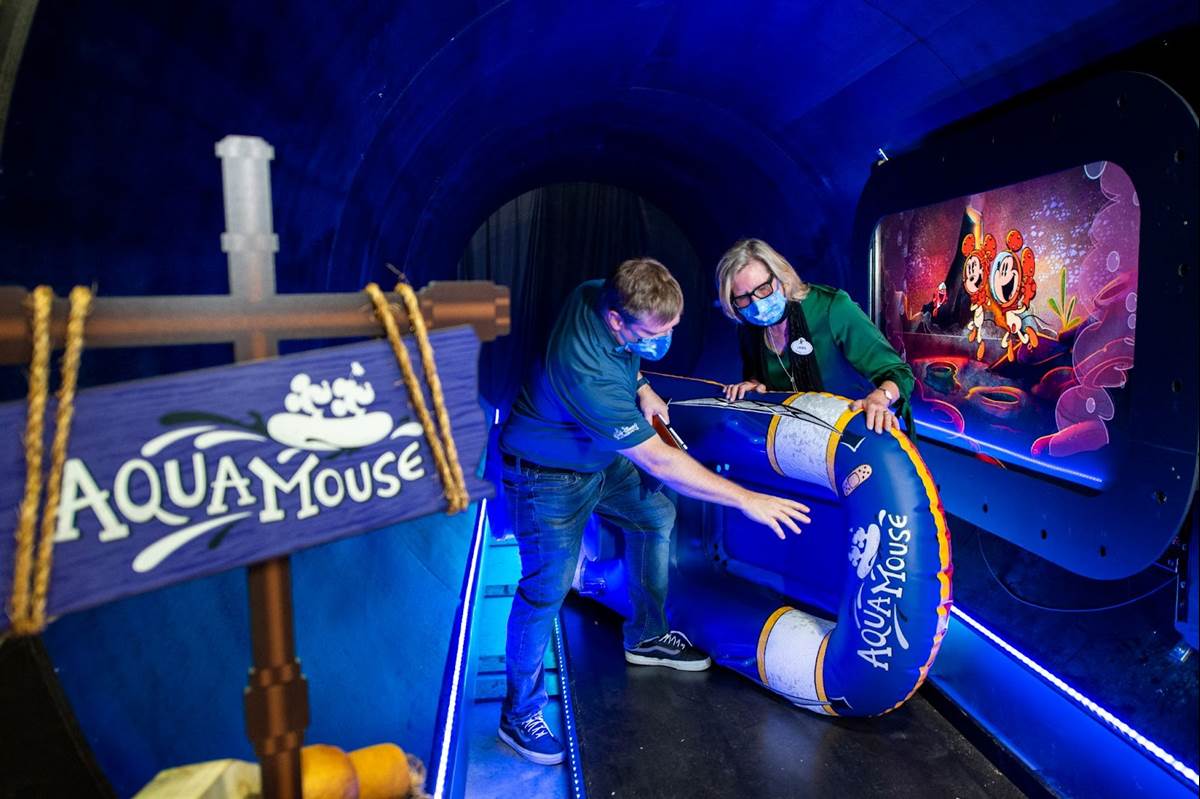 When the AquaMouse was revealed as the next progression of onboard water attractions, I know everyone I knew was talking about how they would take a watercoaster and add a storyline to it? After seeing the mock up and the videos the answer is VERY WELL!