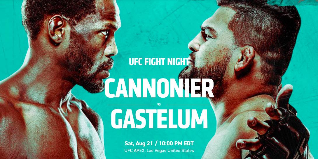 UFC Fight Night: Cannonier vs. Gastelum will be held Saturday, August 21 at 10 PM ET. Fight fans can watch live on ESPN+.
