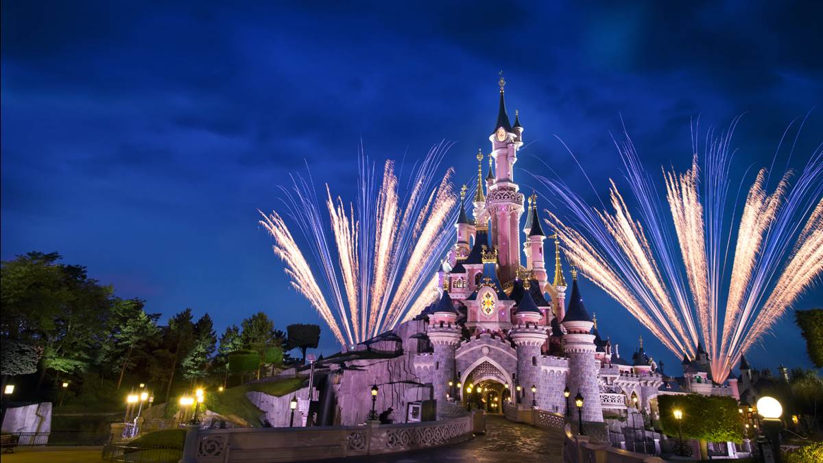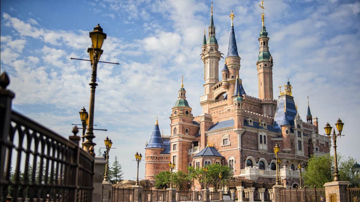 Next up in our timeline, Hong Kong Disneyland. Like Tokyo, they wanted Walt Disney World’s Cinderella Castle as well. Imagineer Doris Woodward simply said “no.” Instead, they got a copy of the original Sleeping Beauty Castle at Disneyland. The difference for this park is cultural, and that park is laid out using feng shui, with ocean in the front and mountains in the back for strength and power. Woodward explains that all the other castles face south simply for photos. Castles are always lit that way. Hong Kong Disneyland’s Castle faces east, with the sun setting behind the mountains behind it.