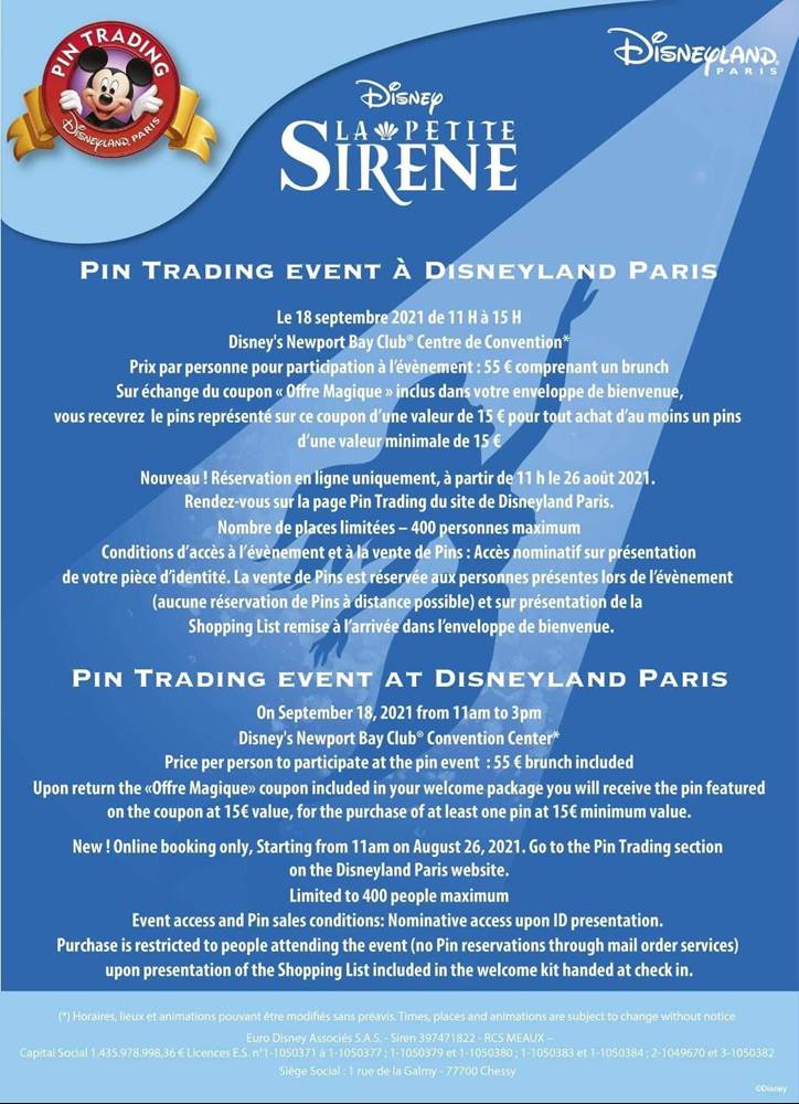 Disneyland Paris has shared the details of their first pin trading event since the beginning of the pandemic. Themed to La Petite Sirene (The Little Mermaid), this event is limited to only 400 people.
