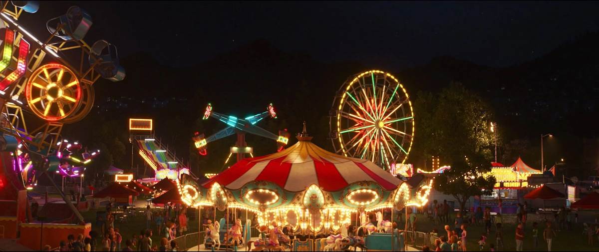 Kim Collins shared one of her favorite Easter Eggs, one that is pretty obvious if you’ve seen Toy Story 4, in the episode of Dug Days titled “Flowers.” The Ferris Wheel from the carnival, seen at several moments in the film including a stunt jump by favorite Duke Kaboom, is seen in the distance as Dug and Carl look on the horizon getting ready for some local aerial festivities. Notably, Toy Story 4 was the last project that Collins had worked on before she joined Dug Days.
