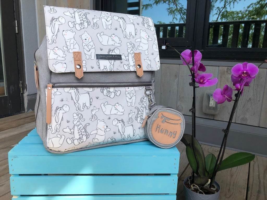 In July, Petunia Pickle Bottom introduced the latest Disney Baby collaboration to their line: Playful Pooh, an adorable grey and white pattern featuring Winnie the Pooh, Piglet, Tigger, Eeyore and some buzzing honeybees. Bekah reviews their Meta Backpack as an essential travel/work bag.