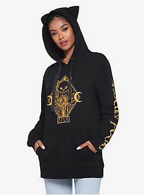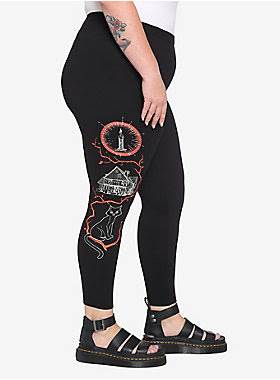 Feeling frisky? Celebrate Binx the black cat in this casual hoodie that has its own ears! A large “hocus pocus” logo trails down the left arm and Binx is featured on the front above his name and the black flame candle! Complete your look with black leggings decorated with lightning and logos.