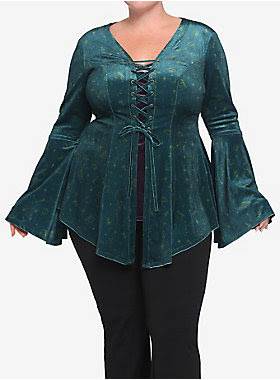 Dying to dress like Winifred but want to avoid a full costume? This green top will do the trick with it’s lace up front and bell sleeves. Look at those sleeves!