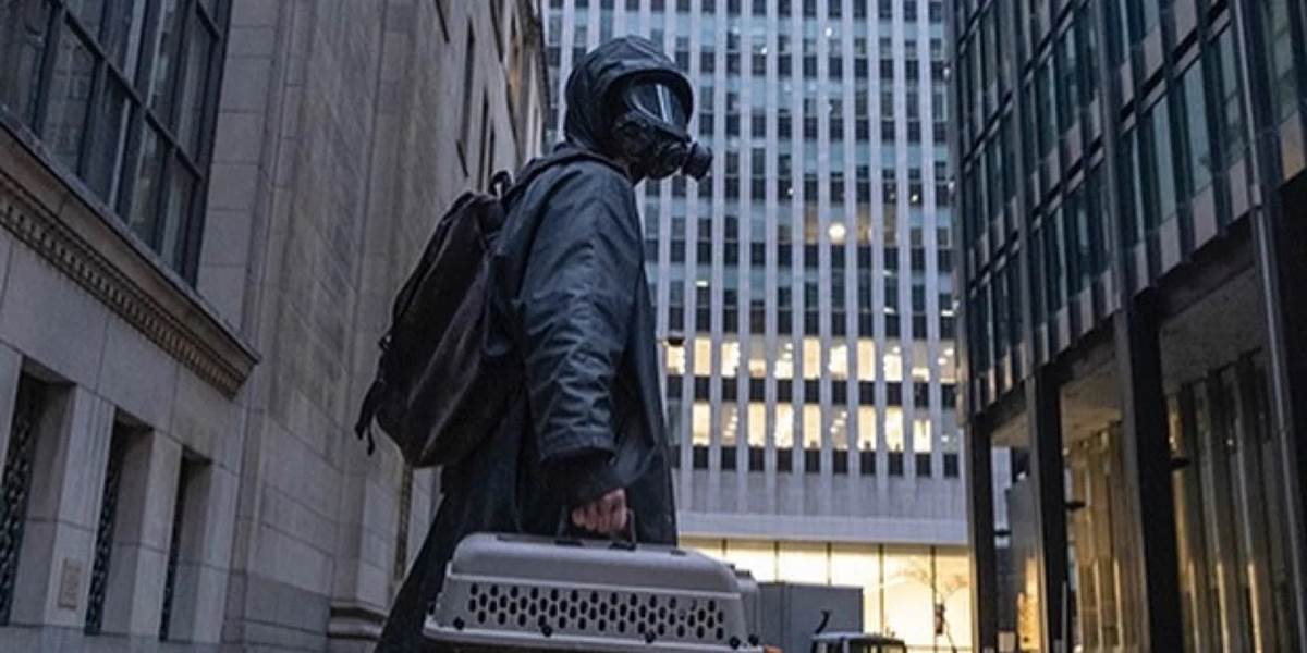 The premiere episode begins with shots of locations all over the world, where dead bodies litter the streets and memorials honor those that have apparently passed in a mass catastrophe. A monkey jumps into a taxicab and retrieves a pen for its owner, who trades a cracker for the writing implement. The man is spray painting a message on the walls of this city: “Beth, I’m alive. Come home. - Y” A crashed helicopter falls from the rooftop of a nearby skyscraper and Y (real name Yorick, played by Ben Schnetzer) dashes out of the way at the last second. The camera then pulls up and reveals the streets are also in the shape of a “Y” and the series enters its first opening credits sequence.