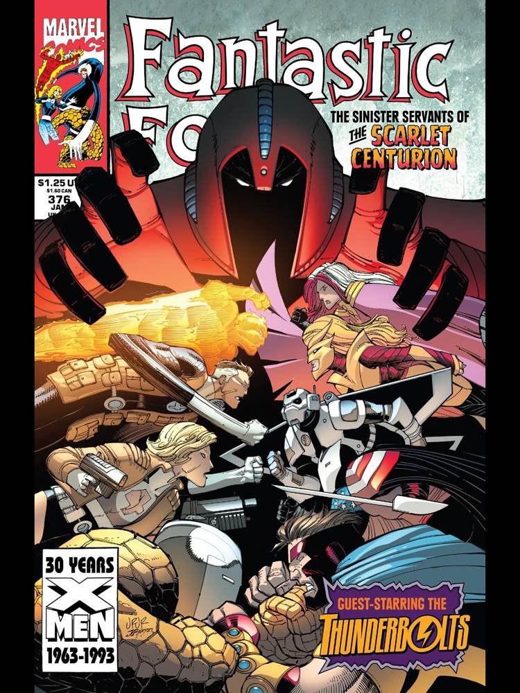 The Fantastic Four are just getting home from their most recent incident in Latveria and need to immediately get to work on finding a solution on Johnny Storm’s hot new problem. Of course, even while dealign with one problem, the next one is never too far away. Enter: Kang the Conqueror.
