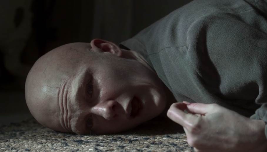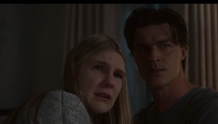 Seeing what is happening to herself, Doris decides to shave off the rest of her hair. She becomes distracted though by the sound of Eli’s heartbeat. She grabs a knife and goes after the baby but Harry arrives just in time to stop her. When he sees what has happened to his wife, he appears heartbroken but has not choice but to lock her in the bathroom. Unfathomably, he uses a dresser to block the doors, which we just saw open up in the opposite direction. The scene makes it quite clear that this should not work, but sure enough it does. I guess the hope is just that viewers aren’t really paying attention.