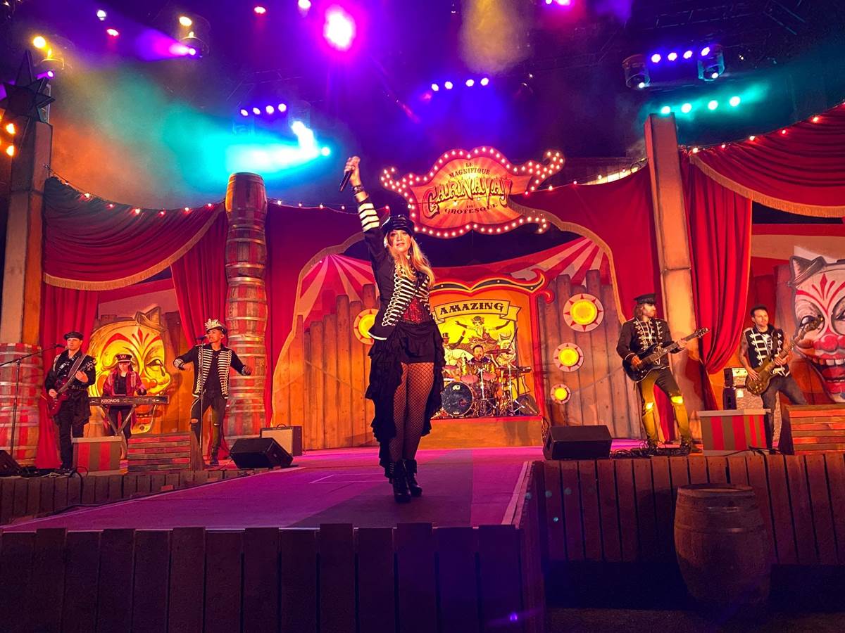 As far as the shows are concerned, there are some great new additions to the lineup, like “Invitation to Terror,” which puts the Mystery Lodge and its Pepper’s Ghost effects to great use with a hilarious 80s vibe, “Le Magnifique Carnaval du Grotesque,” which sees the band Hiatus (made up of members from Disneyland Resort’s much-missed Mad T Party band) take the Calico Mine Stage for 40-minute sets of rock n’ roll covers, “Wicked Drums,” which brings a trio of witches to the Camp Snoopy Stage (known as The Hollows scare zone’s glen during Scary Farm) in an effort to resurrect the Headless Horseman with the help of three talented percussion artists, the Day of the Dead-themed “Doce de la Noche” in Fiesta Village, the always-worthwhile “Into the Fog” art show celebrating the long history of Knott’s Halloween haunt, and returning acts like the “Conjurers” magic show in the Birdcage Theatre and the raucous “Puppet Up! Uncensored” from Henson Alternative.