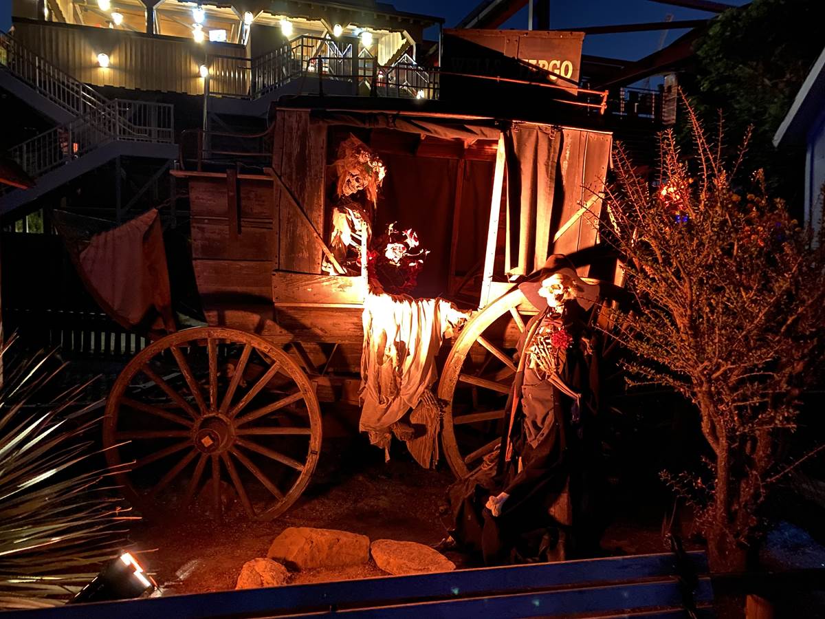 Before we left, we couldn’t help but jump on the Timber Mountain Log Ride attraction, which has once again been converted to its “Halloween Hootenanny” overlay for the season, even if that meant walking around with wet shoes for the rest of the night. And all told, it really is just wonderful to have Knott’s Scary Farm back in Southern California after a year of uncertainty and much more menacing real-world scares. It was a pleasure to step through those gates and through the welcoming fog of Walter Knott’s Ghost Town and its surrounding areas, exploring and appreciating the effort that went into bringing this event back to life.