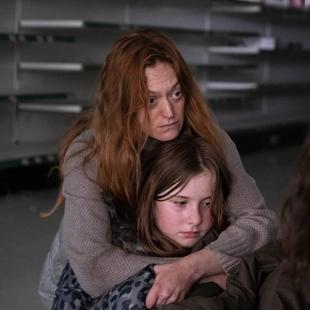 In the woods, Yorrick watches a video of Beth on his phone while he’s laying in the tent. Agent 355 comes back from a run and tells Y to take his clothes off so she can wash them in the river. He initially refuses because “it’s cold out here” but gives in, stripping down to his underwear and handing over everything else. “Change into something clean,” Sarah says, handing him a backpack. At the barn, Hero overhears Sam trying to start the car to no avail. Later on the stop at an abandoned drug store, which has been almost entirely cleaned out. Suddenly a ball bounces out of the back area toward them and they follow its path to the source: Nora’s daughter, who is sleeping on one of the empty shelves. When Hero tries to examine her wound, Nora runs up from behind and almost attacks her. Hero says she’s an EMT and can help, so after Nora calms down they take the bandage off and wash off the cut with alcohol. Hero offers to take Nora and her daughter back to the house to rest, though Sam looks disappointed they’re not continuing on their way.