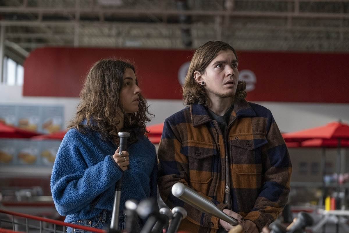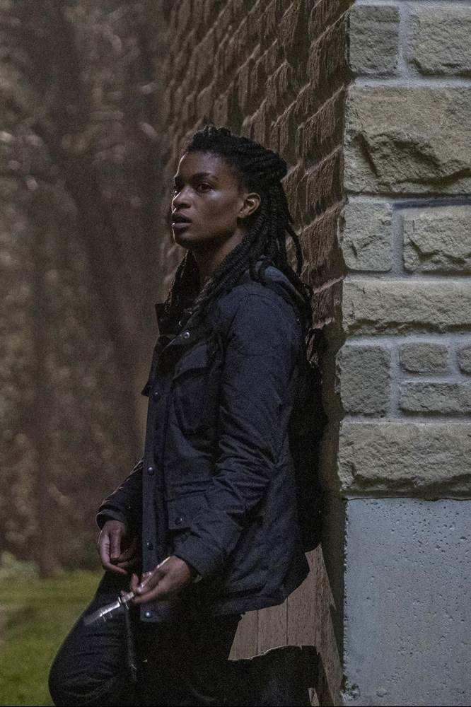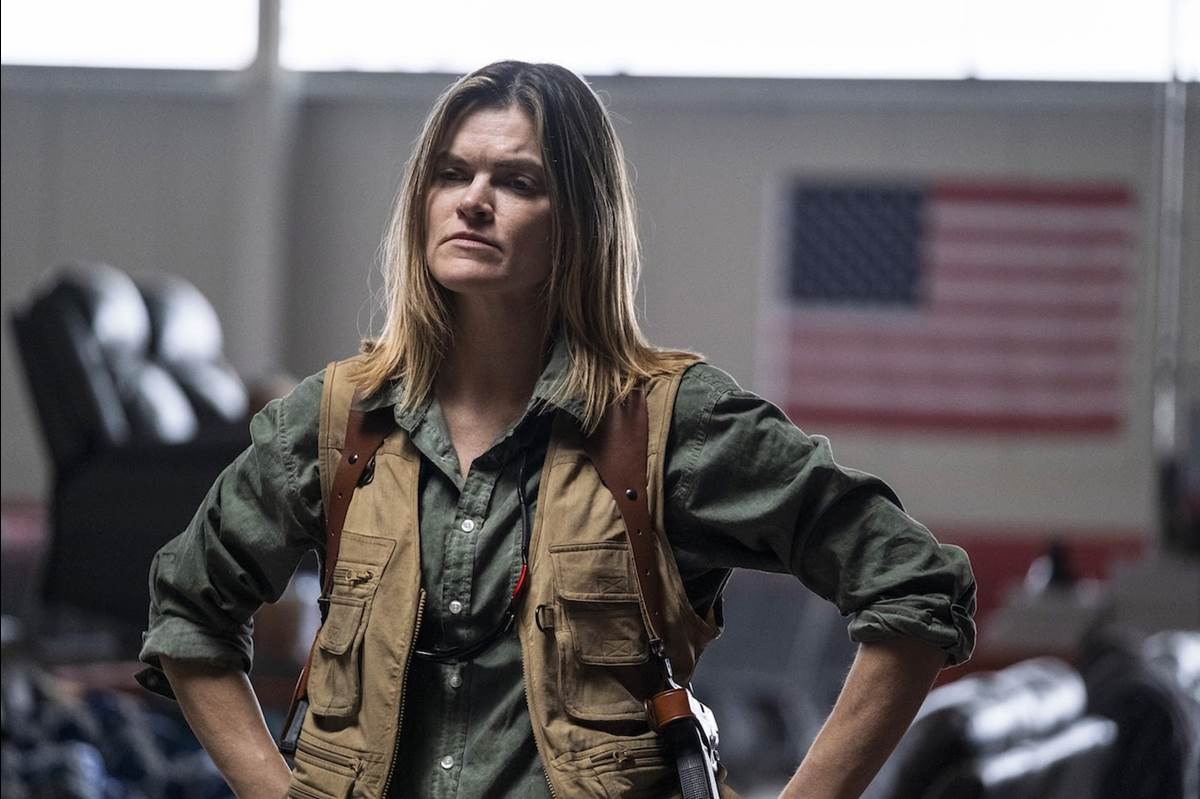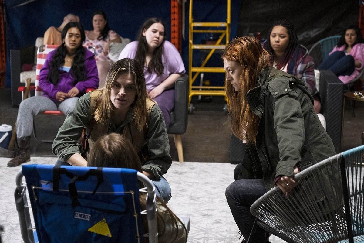 Sam says everyone is staring at him, and Hero takes some other drugs “for fun.” The leader of the group, Roxanne, continues the discussion until Nora and her daughter try to leave. “You are a guest in our home,” says Roxanne, who asks Mackenzie what was the first thing men always said to her. Nora gets upset. “She lost her father. She’s grieving.” “Grief can’t protect her… or you,” says Roxanne when suddenly a makeshift alarm goes off. Nora is led up to the roof and given an automatic rifle to shoot at refugees heading to the store. “There’s a kid with them,” protests Nora. Roxanne heads outside to meet with the newcomers. “Seems like you took a wrong turn. There’s nothing we can do for you here. Turn around and go back the way you came.” The refugees ask Roxanne to just take the young girl, but they are intimidated out of it and leave. From the roof, Nora looks on, disgusted. “We’re lucky to be here. It’s much worse out there,” says her companion.