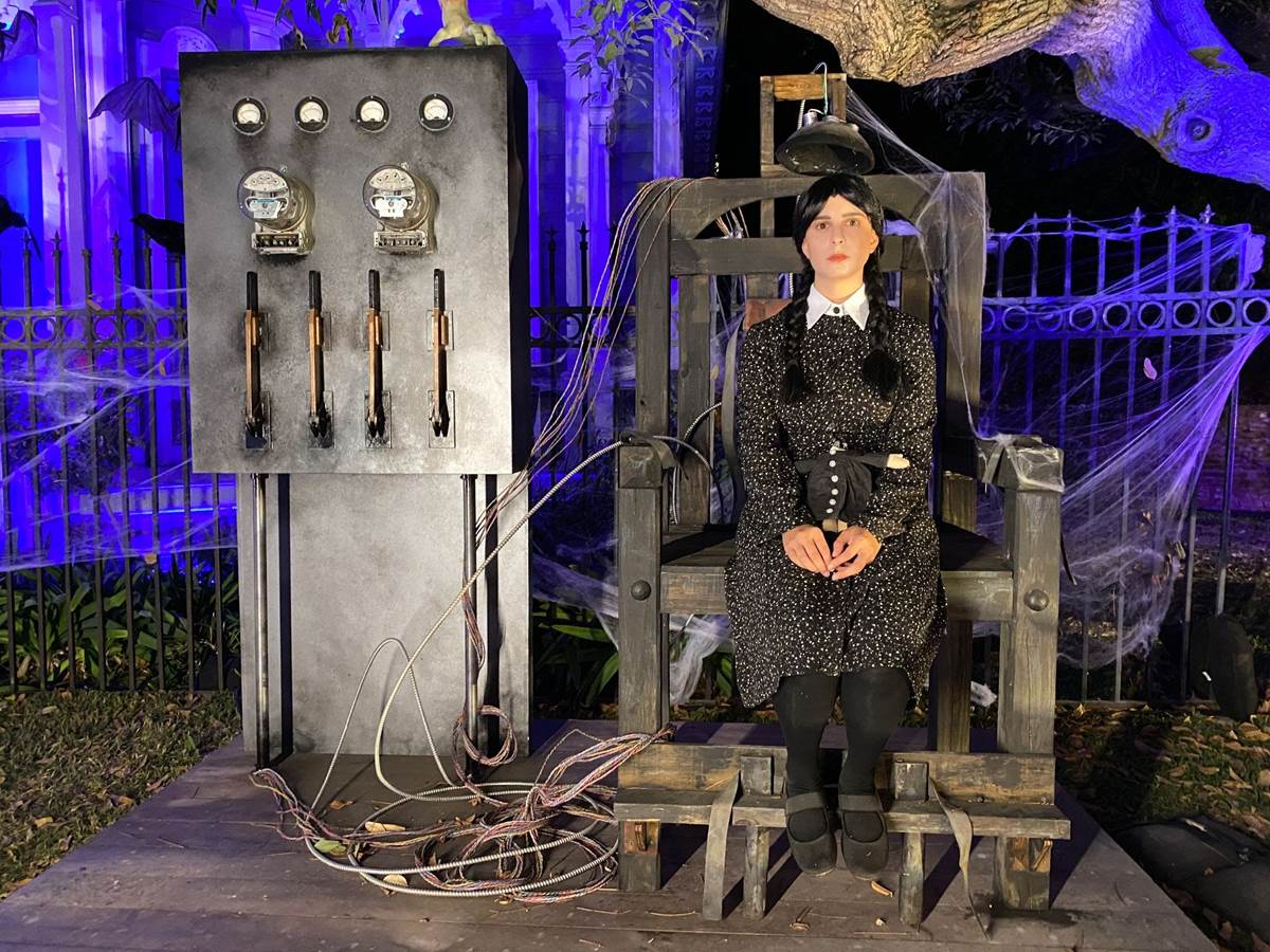 Next door is The Addams Family house, where Wednesday Addams and Uncle Fester will pose for socially distanced photos with guests.